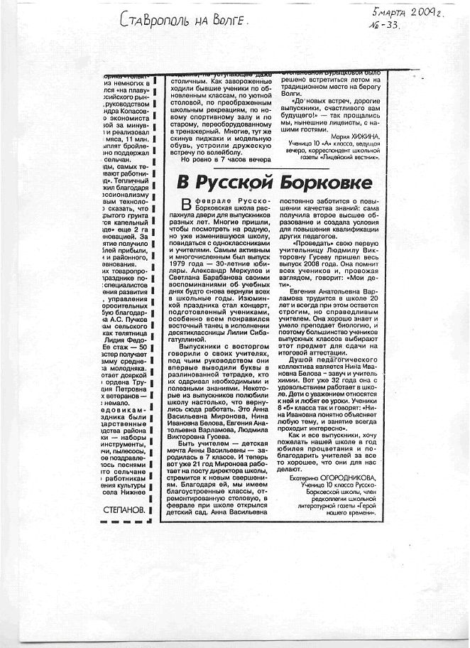 © 2009    Государственное бюджетное общеобразовательное учреждение Самарской области средняя общеобразовательная школа имени Героя Советского Союза Д.Н. Голосова с. Русская Борковка муниципального района Ставропольский Самарской области